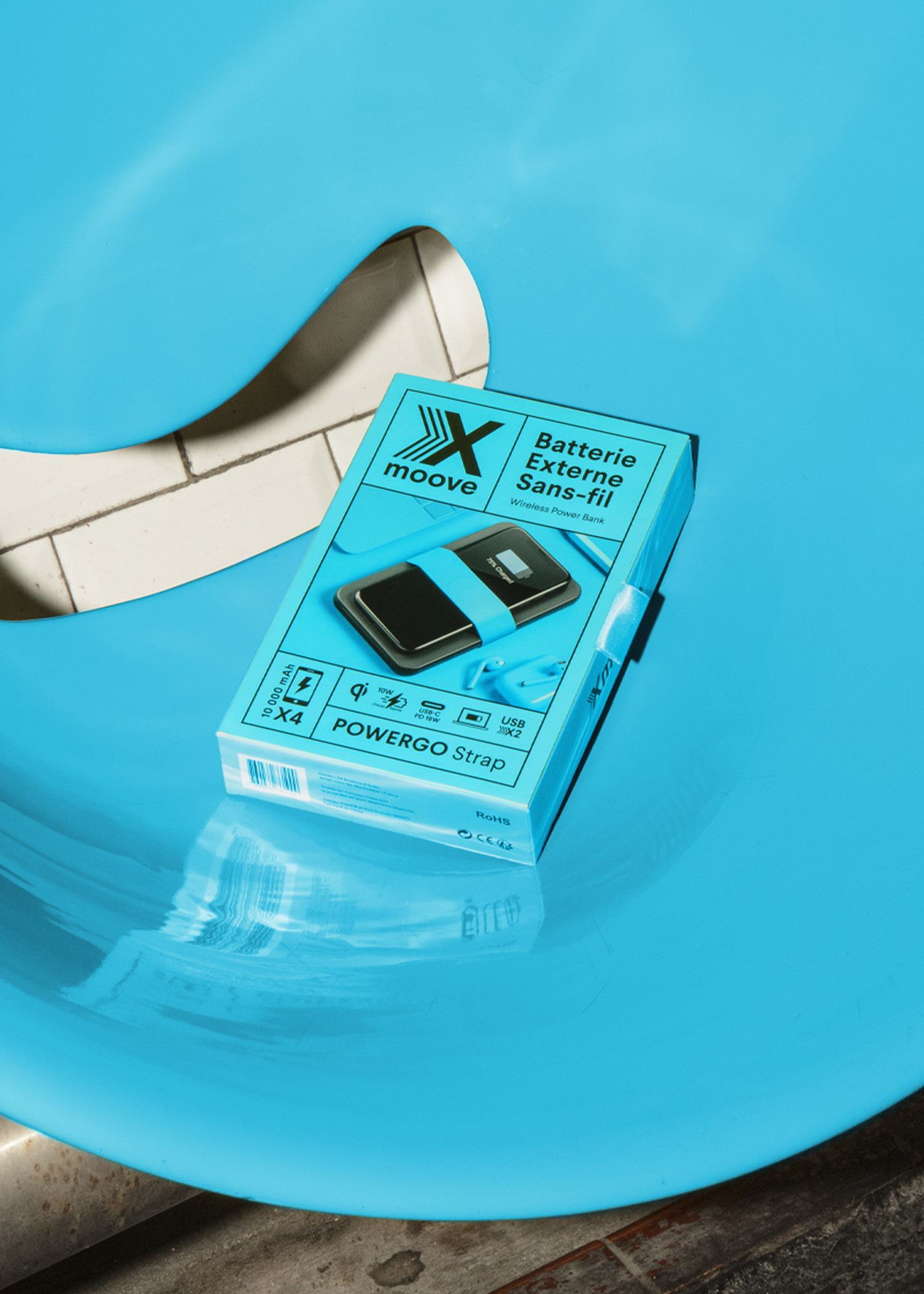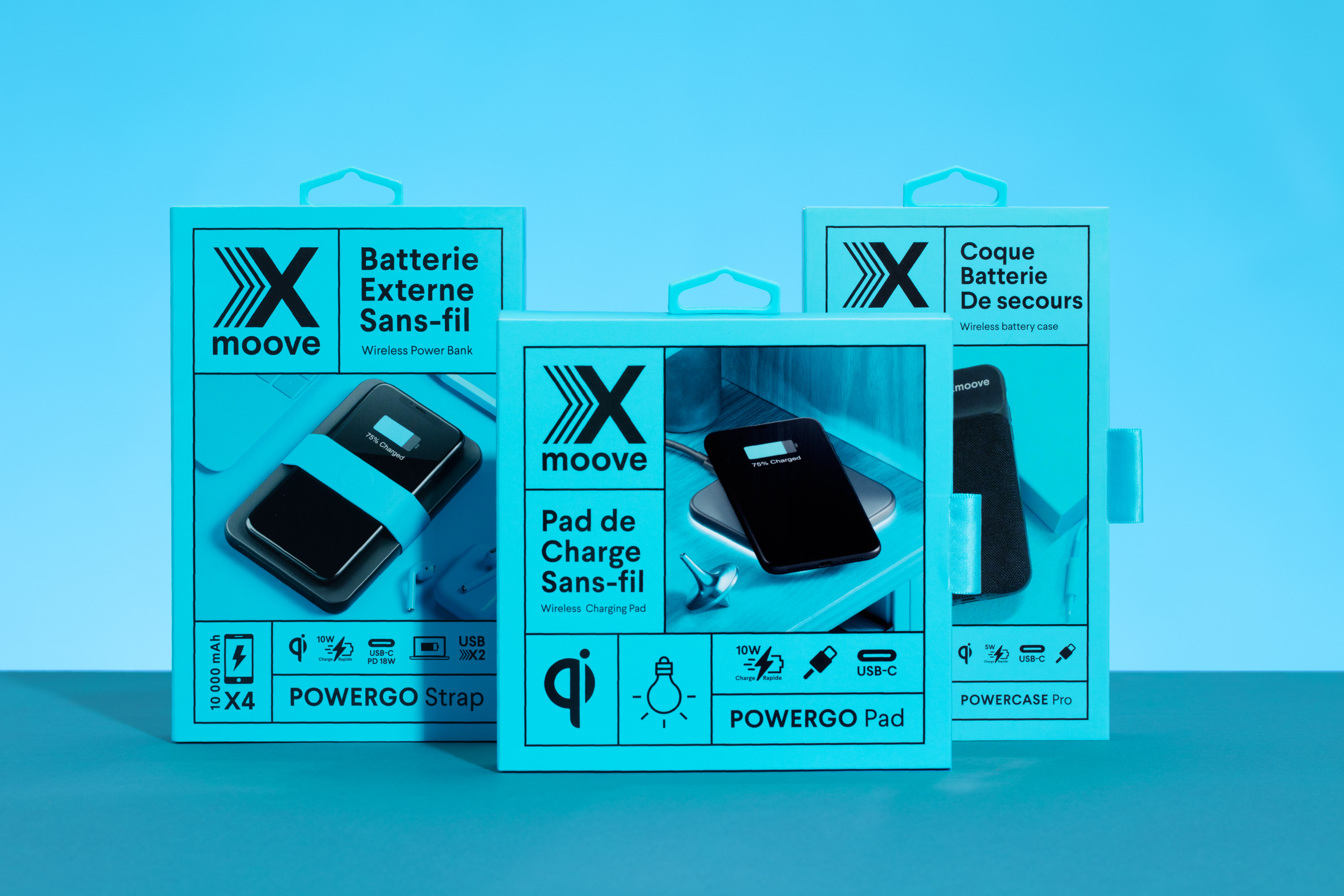 Création d’une identité visuelle pour Xmoove, marque spécialisée dans les accessoires pour smartphones et batteries. En parallèle de la création du logo et d’une charte graphique packaging, j’ai assuré la réalisation des visuelles 3D avec un prestataire externe.